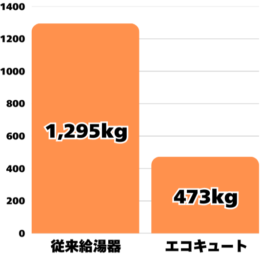 もちろん、ヒートポンプを動かすために電力を使うため、間接的なCO₂排出はありますが、消費電力が少ないため、トータルではガス給湯器と比較して約65%もの排出削減効果に期待できると試算されています。